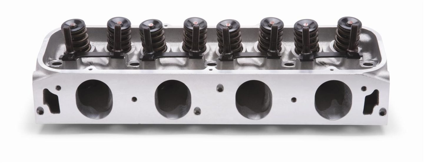Edelbrock Performer RPM aluminum cylinder heads feature threaded inserts in the rocker studs and exhaust manifold bolt holes for superior strength and durability. They also include hardened seats, bronze valve guides, and fully machined valve cover rails for a more consistent gasket seal. These heads offer improved power throughout the RPM range for greater throttle response and top-end horsepower. Countless options are available; order the model recommended for your vehicle and engine application.