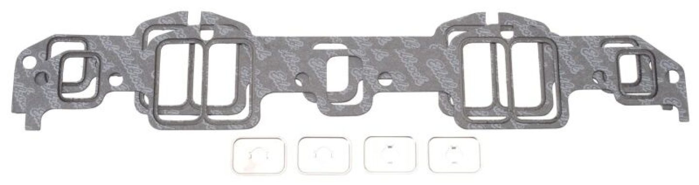 Edelbrock intake manifold gaskets offer precise sealing to make more power! Properly sealing an engine is vital to making maximum horsepower, and these intake gaskets will allow for optimum flow and performance. Edelbrock synthetic fiber composite gaskets are impervious to most chemicals, and when compressed, will conform to any imperfections on the sealing surface. Produce maximum power with the maximum sealing of Edelbrock intake manifold gaskets.