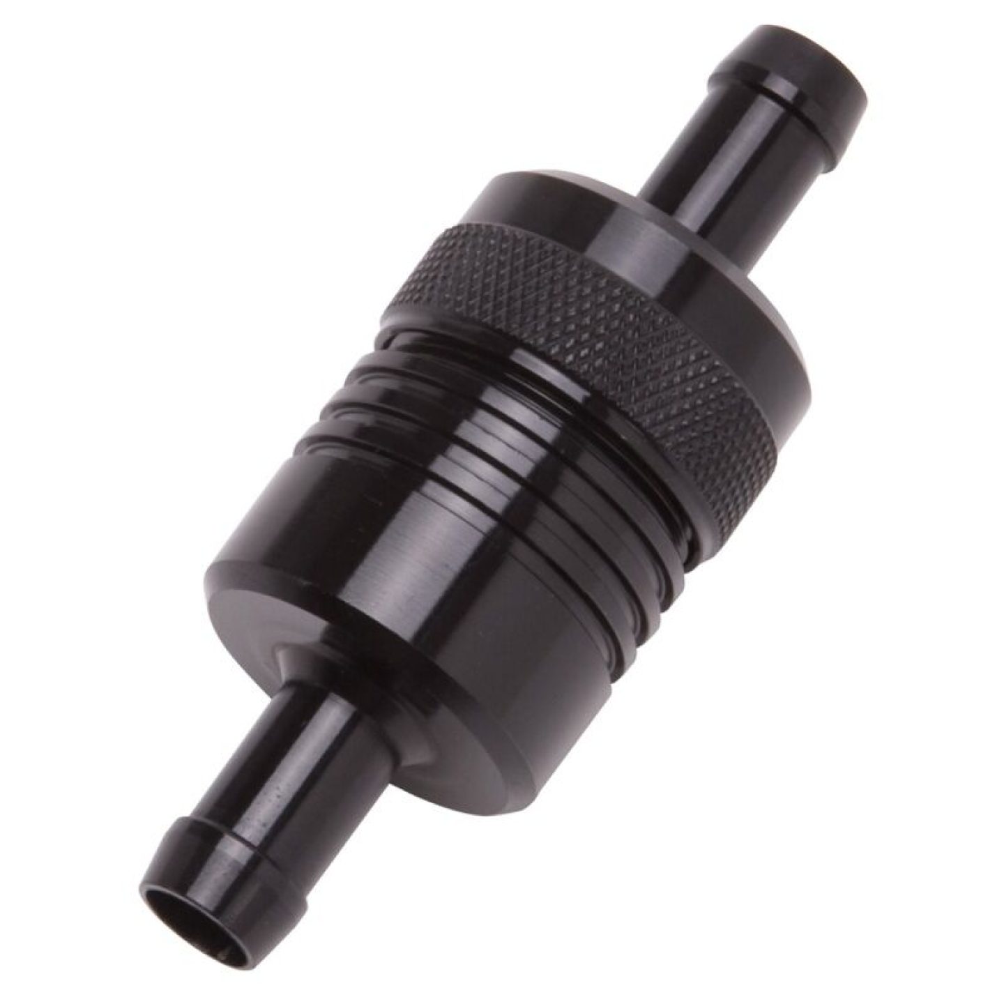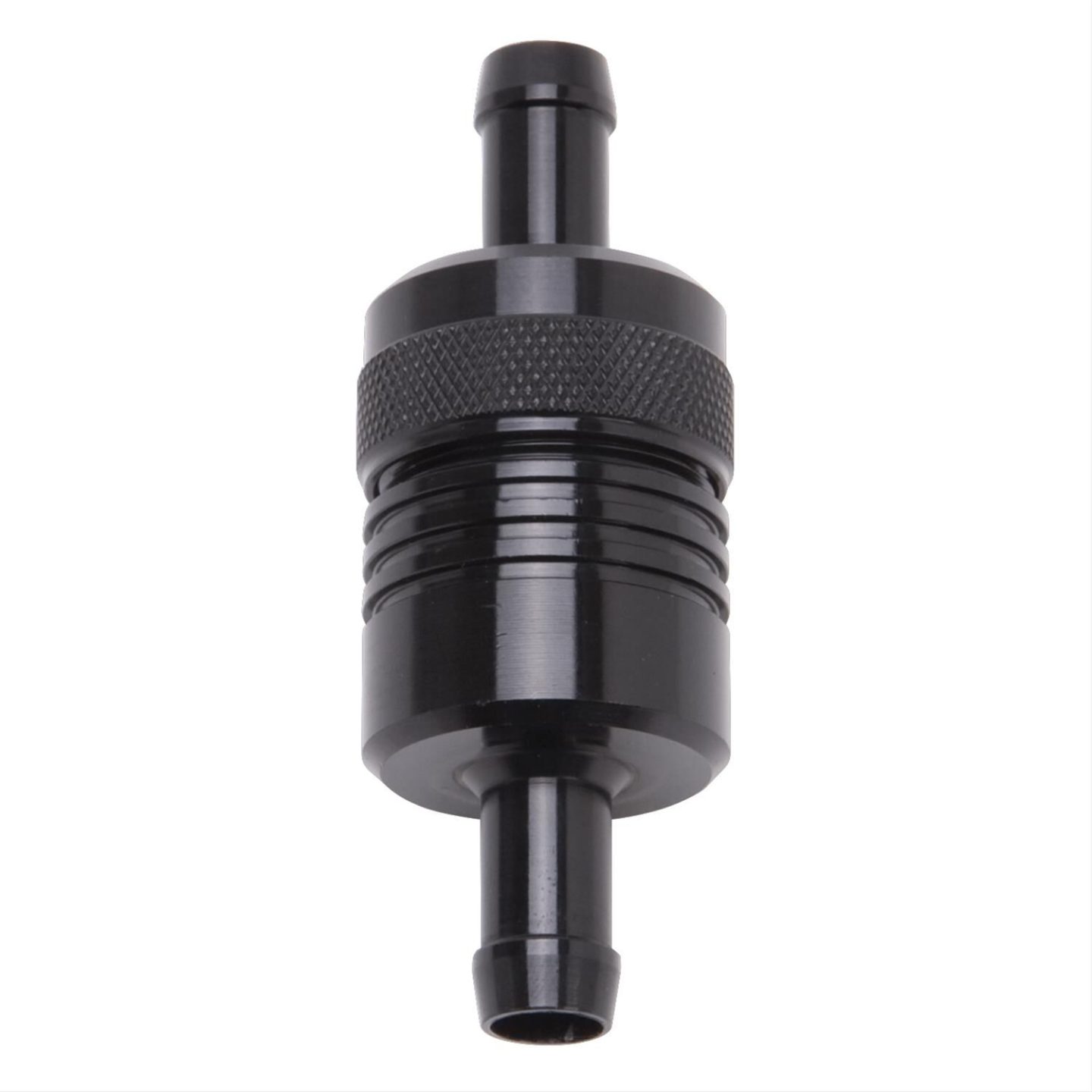 Fuel Filter, Aluminum Street, Inline, Black Anodized, Sintered Bronze Element, 3/8 in. Hose Barb Inlet/Outlet
