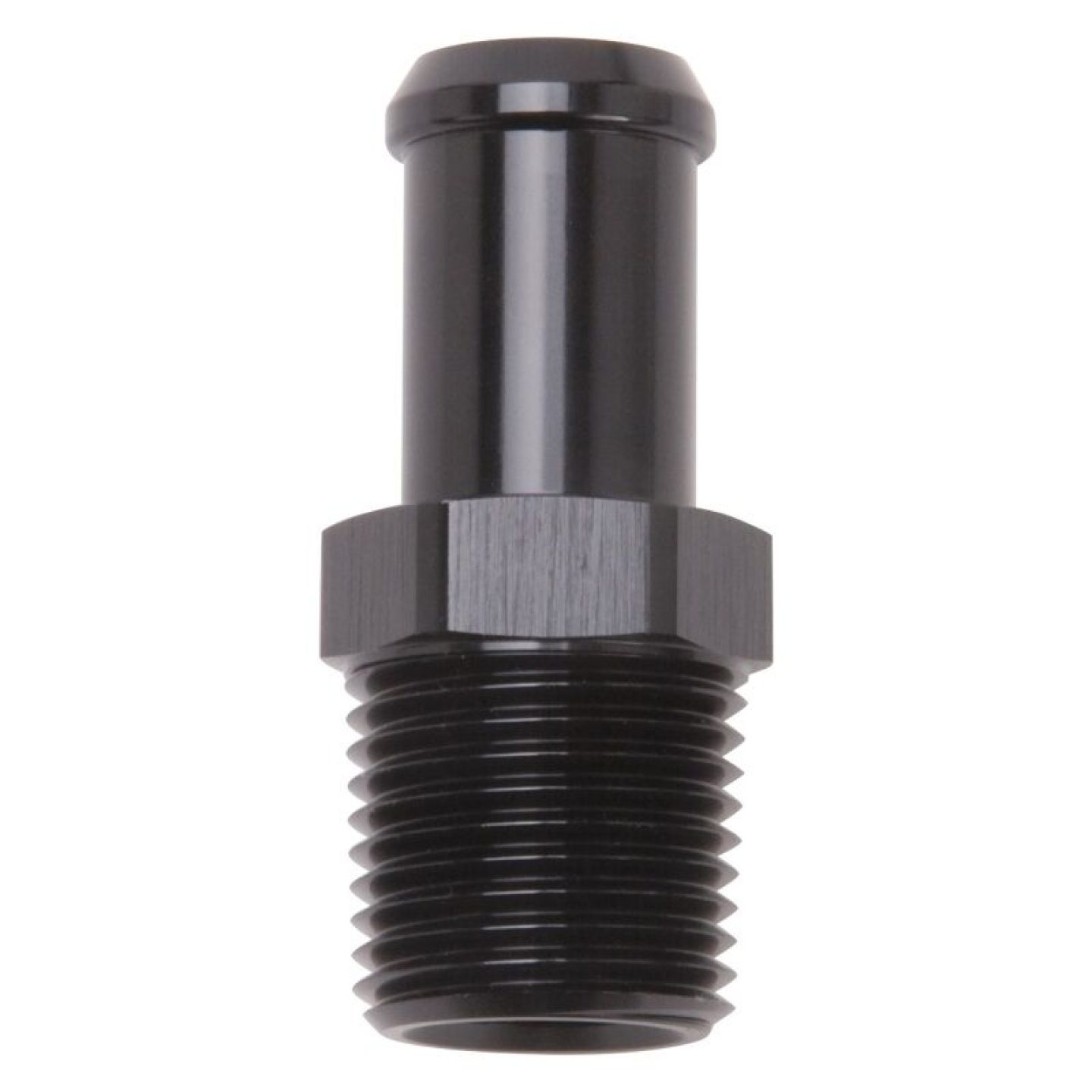 Fitting - Adapter - Straight - 1/2 in NPT Male to 5/8 in Hose Barb - Aluminum - Black Anodized - Heater Hose - Each